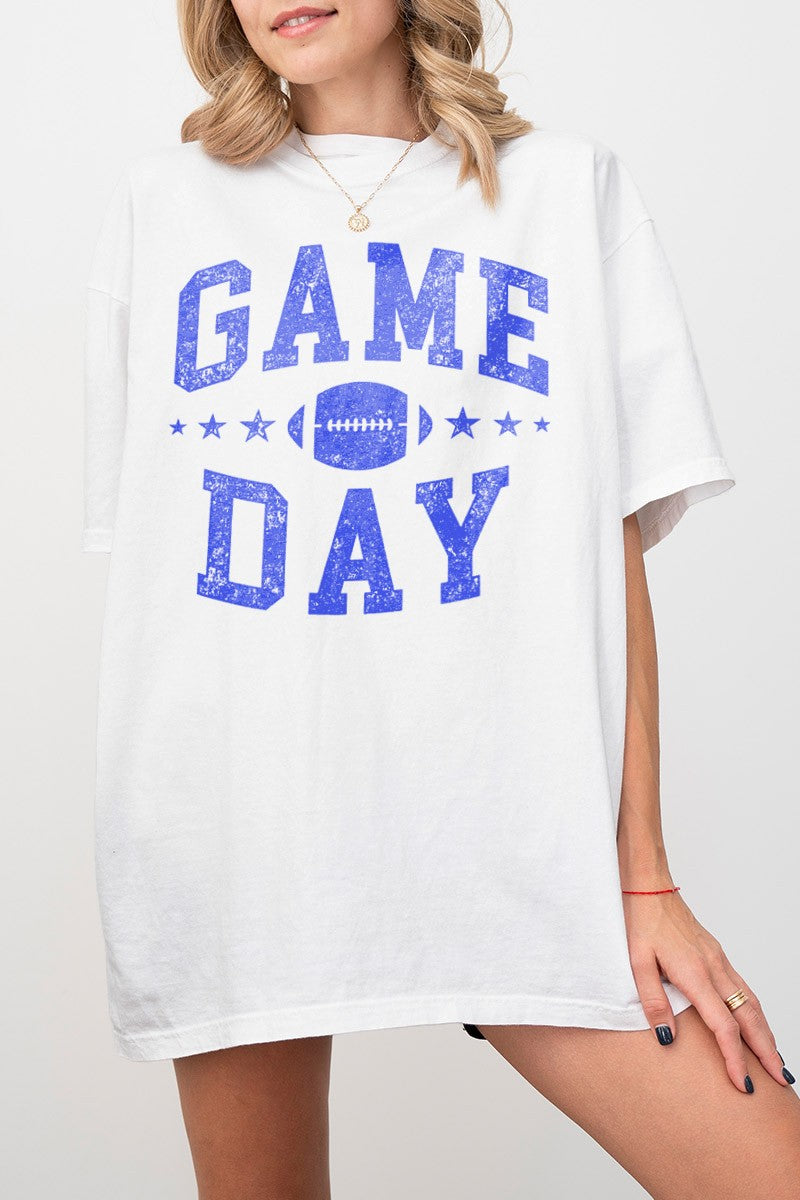 Elevate your game day style with this bold, vintage-inspired football graphic tee. Crafted from heavyweight Comfort Colors fabric, it offers a relaxed adult fit that delivers lasting comfort. Featuring distressed 'Game Day' typography paired with a striking football and star design, this crew neck tee stands out on and off the field. Perfect for those who play hard and cheer louder.