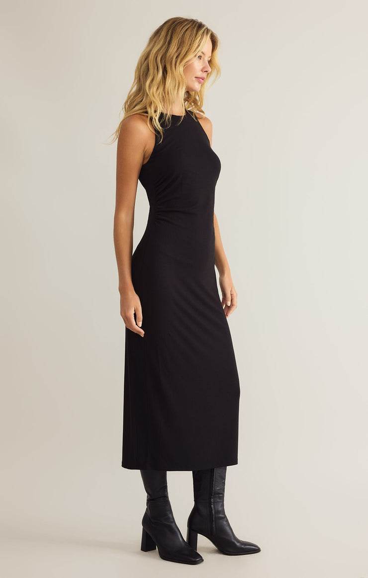 This Adison Rib Midi Dress by Z Supply is effortlessly stylish and comfortable. Made from soft micro rib fabric, it features a sleeveless crewneck and subtle shirring along the sides for a flattering fit. The back slit allows for easy movement, making it the perfect dress for any occasion.