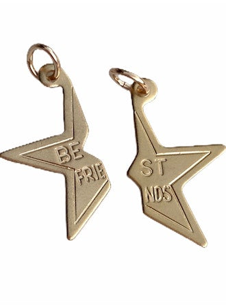 Meet your new BFF: the Best Friends Set! This charming set includes a charm bar and multiple charms, perfect for adding flair to any favorite necklace. Plus, each piece features a gold plated/gold filled loop for a touch of elegance. Get ready to show off your friendship in style! By Farrah B