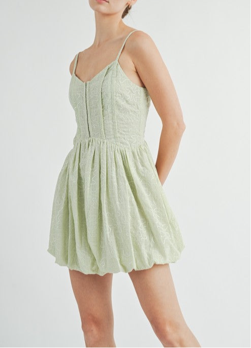 Flaunt your unique style with our Corset Bubble Hem Mini Dress! Made with embroidered fabric, this dress features a corset-inspired design, sweetheart neckline, and a fun bubble hem. The smocked back and adjustable shoulder straps ensure a comfortable and flattering fit. Perfect for any occasion, this dress is a must-have for the fashion-forward individual.
