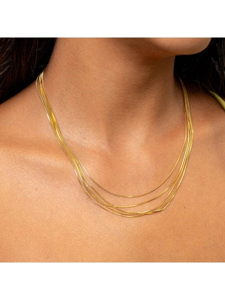 Get ready to make waves with the Echo Necklace! This stylish piece features a multi-strand thin snake chain that adds a touch of flair to any outfit. Plus, it's water resistant - perfect for all your adventures! With a 16" length and extender, you can customize the fit to your liking. Don't just make a statement, make a splash with the Echo Necklace!