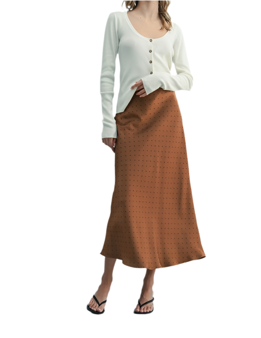 POLKA DOT SATIN MIDI SKIRT - ELASTIC BACK WAIST - LINED