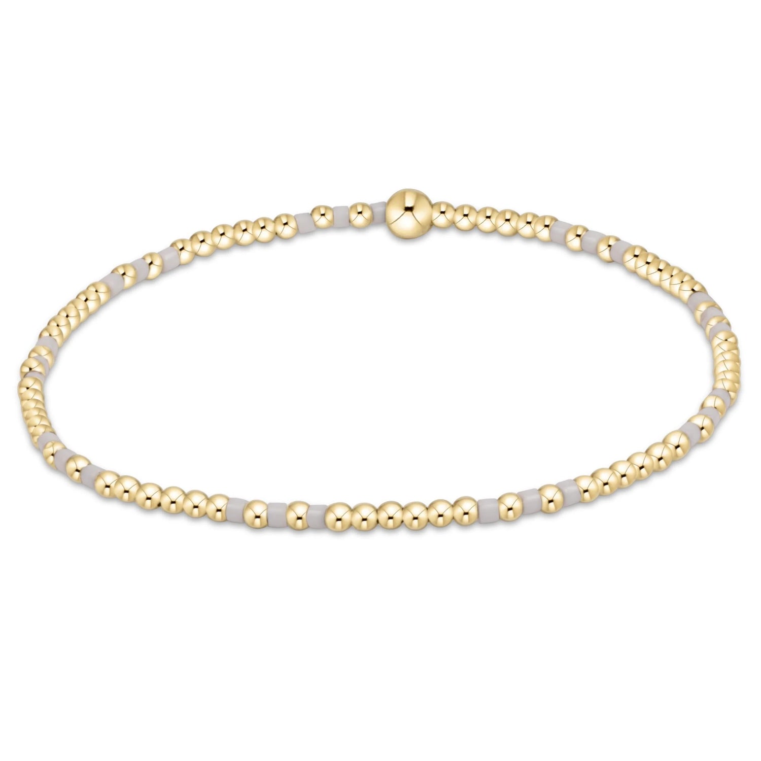 Experience the cheerful and uplifting tones of spring and summer with our Hope Joy pattern 2mm bead bracelet in white. This bracelet features a mix of vibrant colored 2mm seed beads and 2mm 14k gold-filled beads, making it a versatile and eye-catching addition to any outfit. Elevate your style and spread hope and joy with this handcrafted bracelet.