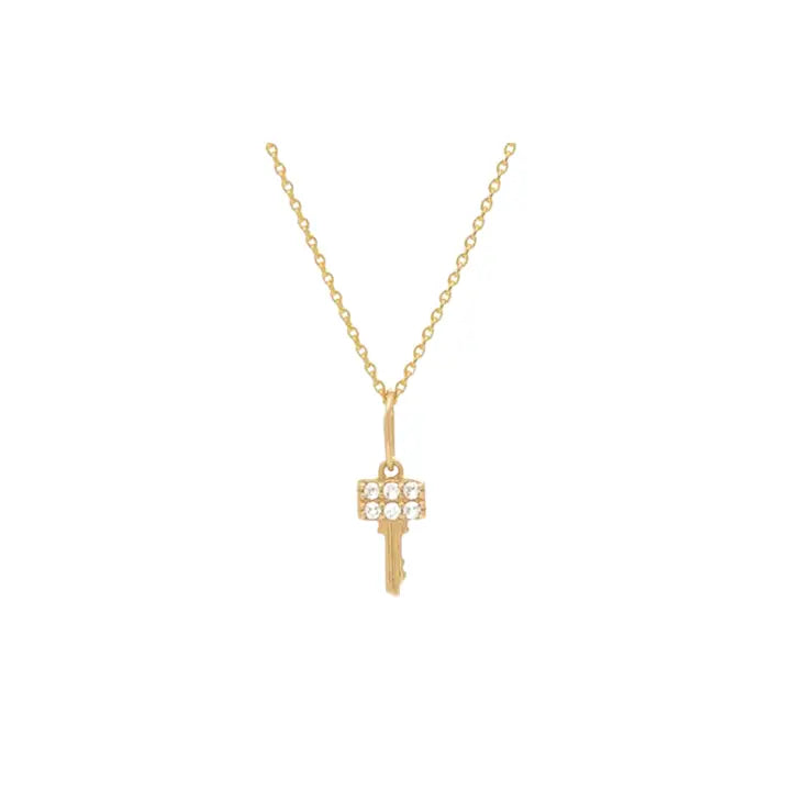 The Key Necklace is small, dainty and so cute, perfect for layering jewelry. 18k gold plated featuring sparkling rhinestones.