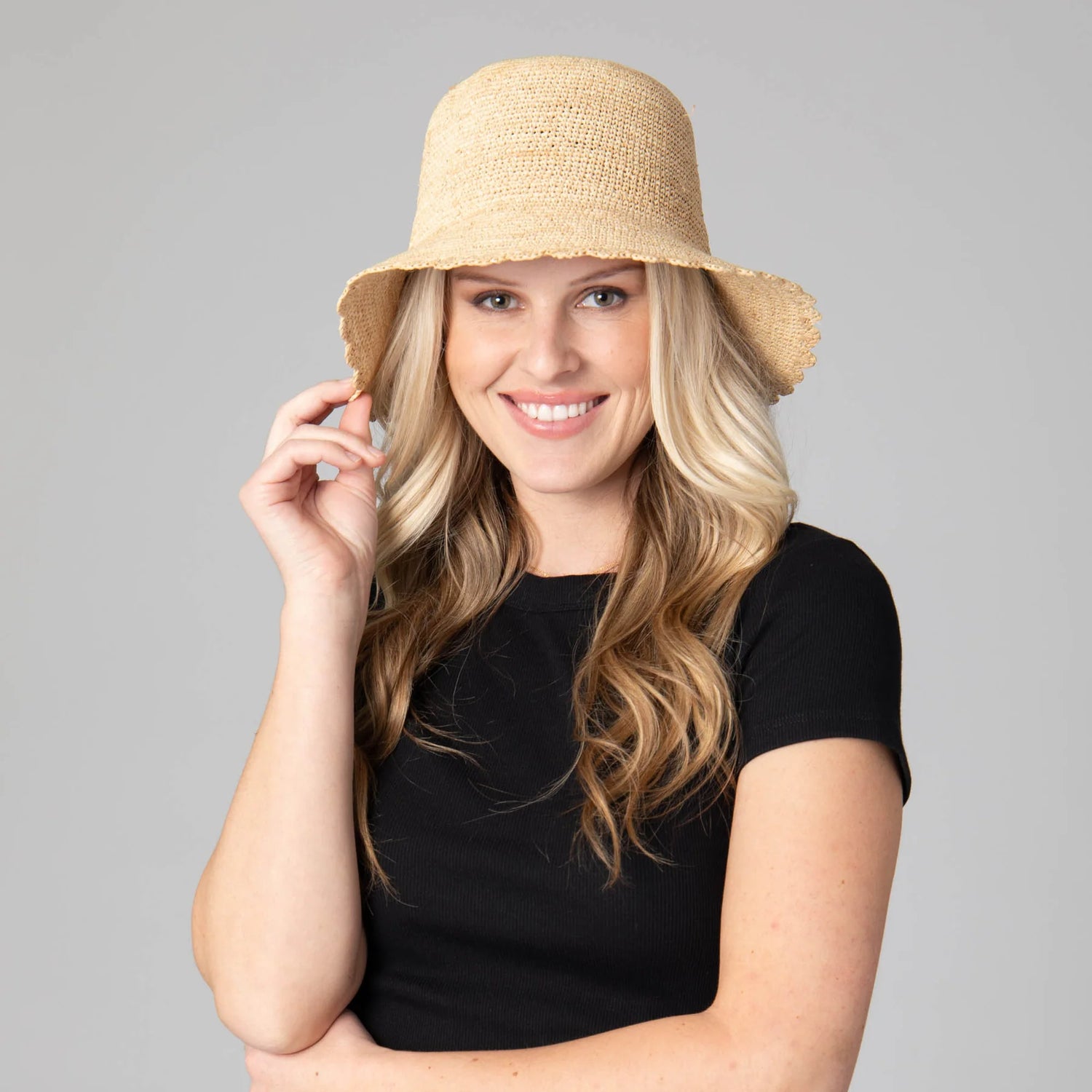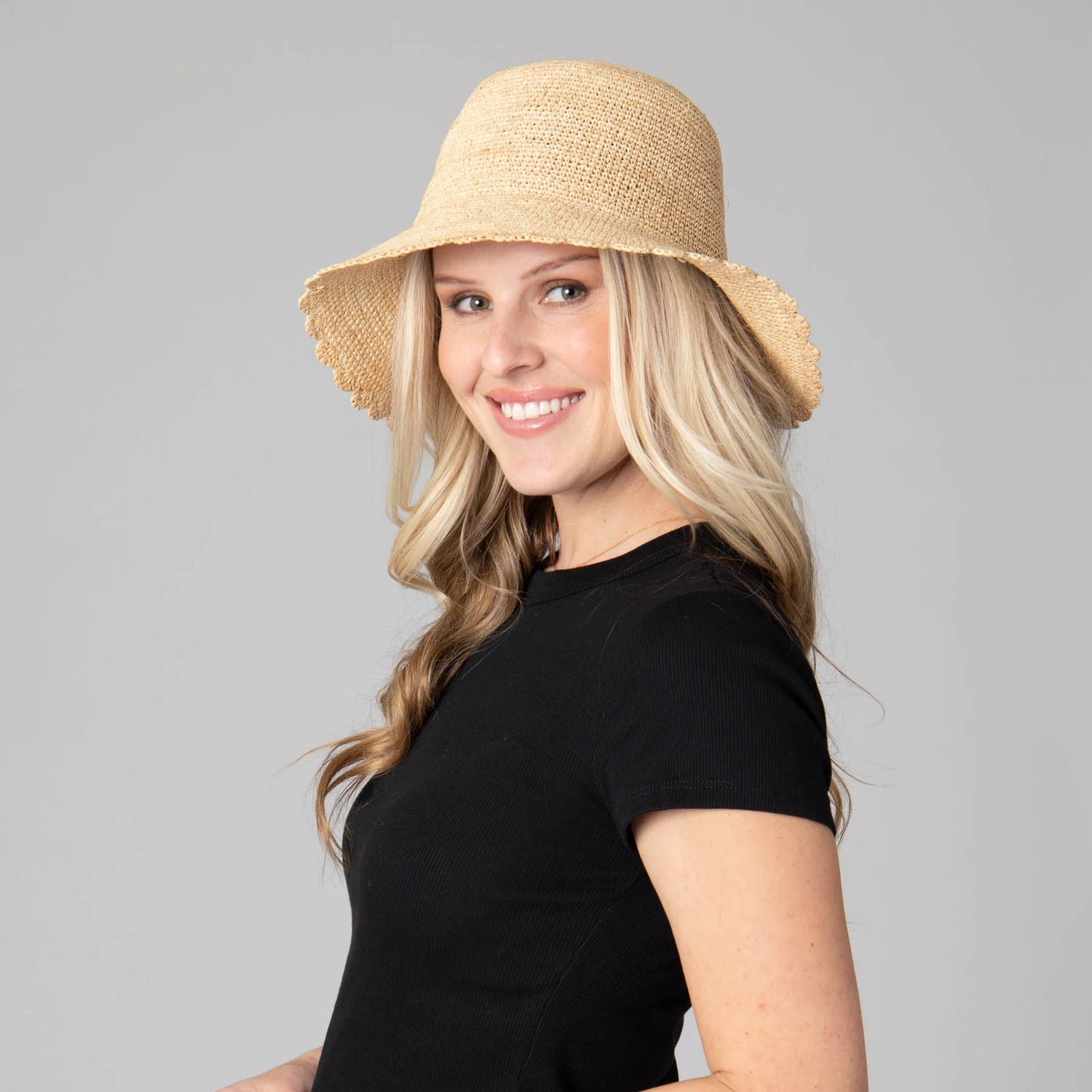 This Sand Dollar Hand Crochet Bucket Hat is crafted from 100% raffia and features a 3.5" scalloped brim for a timeless look. An adjustable fit of 57cm ensures comfortable wear for a variety of head sizes. Whether you're out for a picnic or a day at the beach, you'll look stylish and feel comfortable in this natural design.