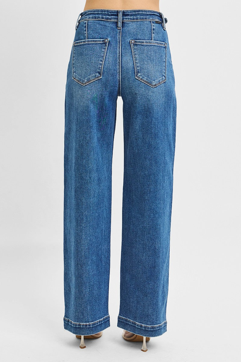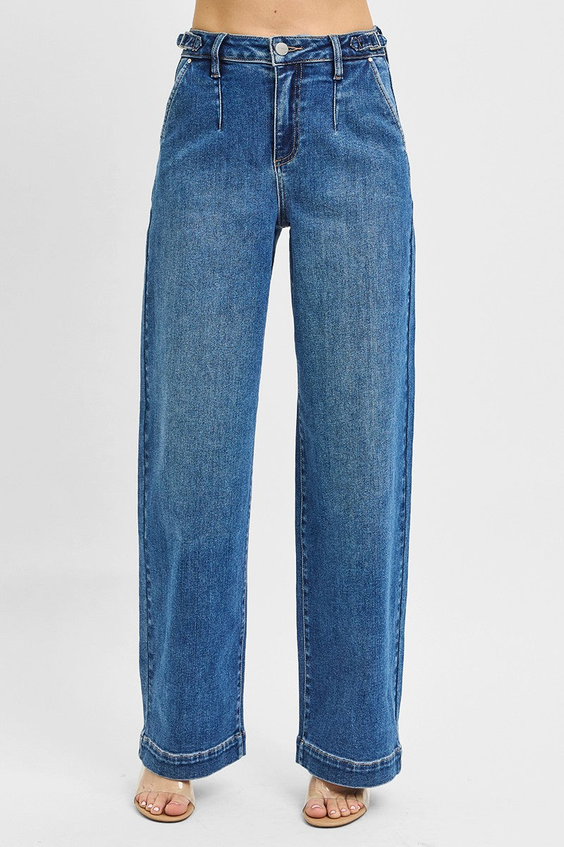 Make a bold statement with the Sandra Wide Pleated Jeans. Featuring an adjustable waistband and a unique pleated wide-leg design, these jeans offer both comfort and edgy style. Crafted from a durable blend of 92% cotton, 6% polyester, and 2% spandex, they provide a perfect fit and flexible movement. Elevate your wardrobe with pants that dare to stand out.