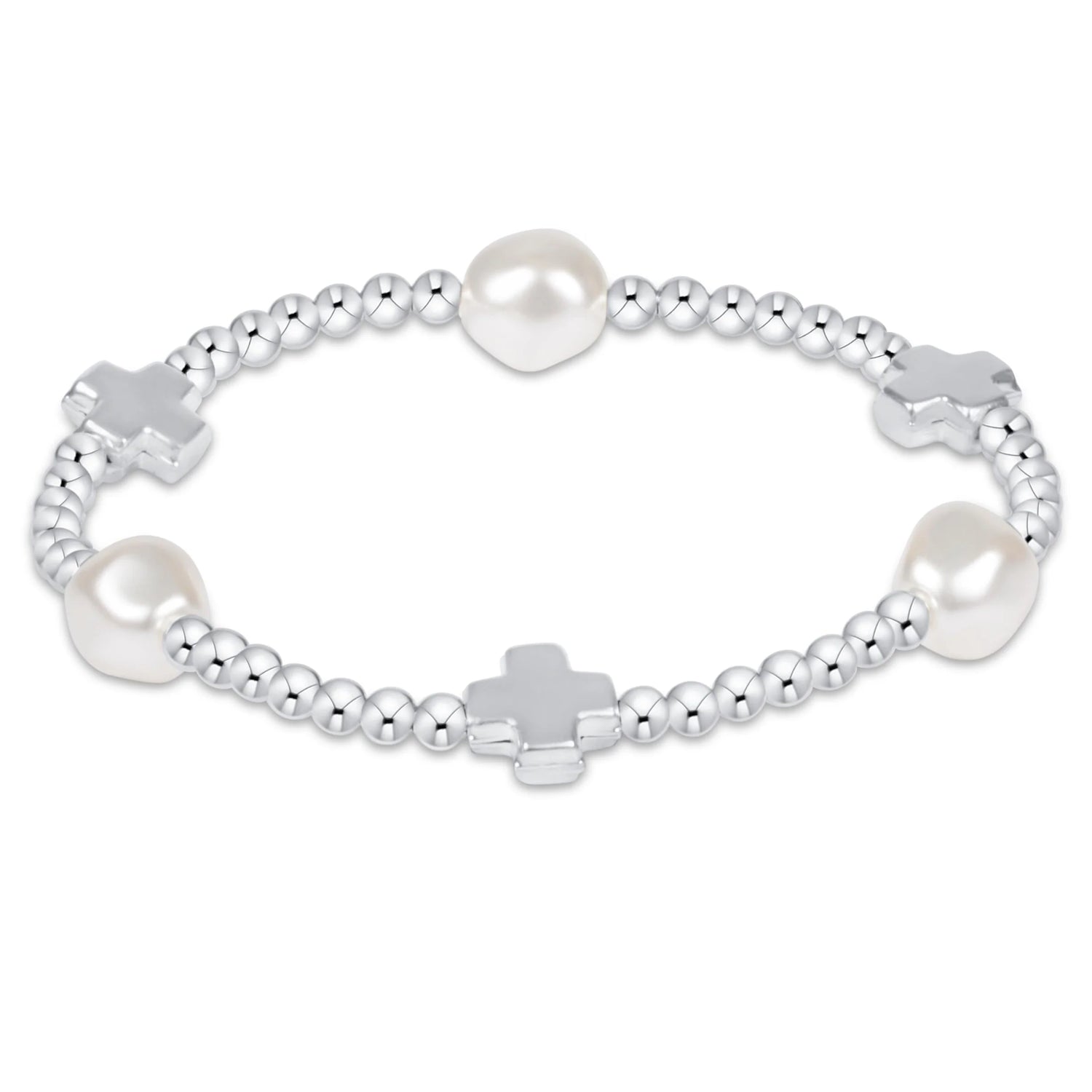 signature cross admire pearl pattern 3mm bead bracelet - sterling by enewton