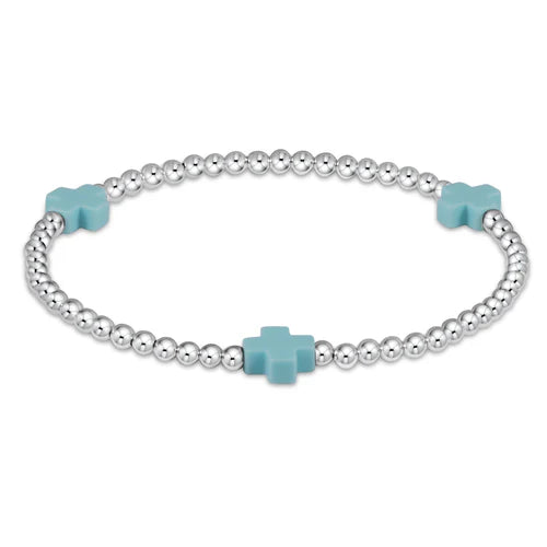 signature cross sterling pattern 3mm bead bracelet- TURQUOISE by enewton