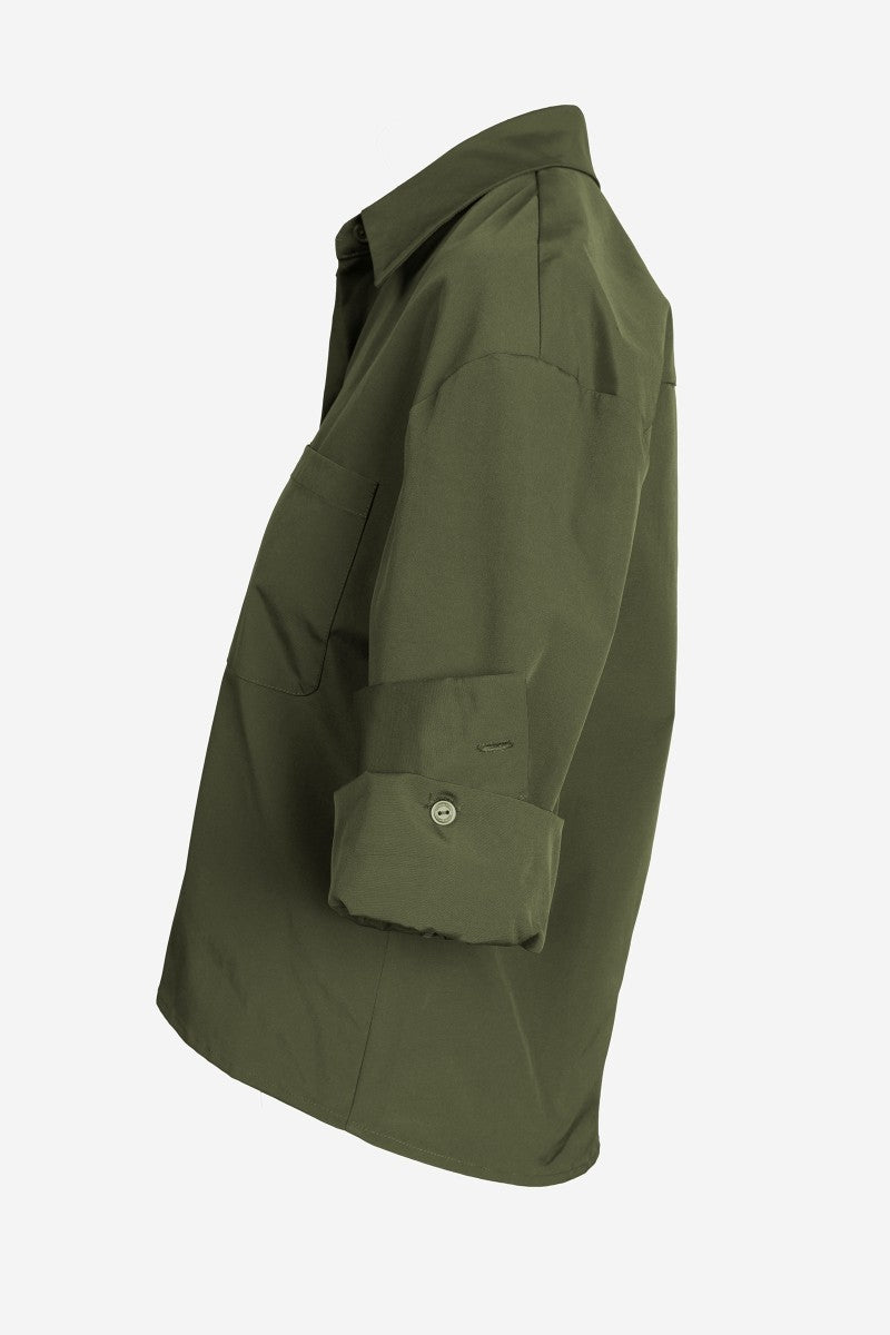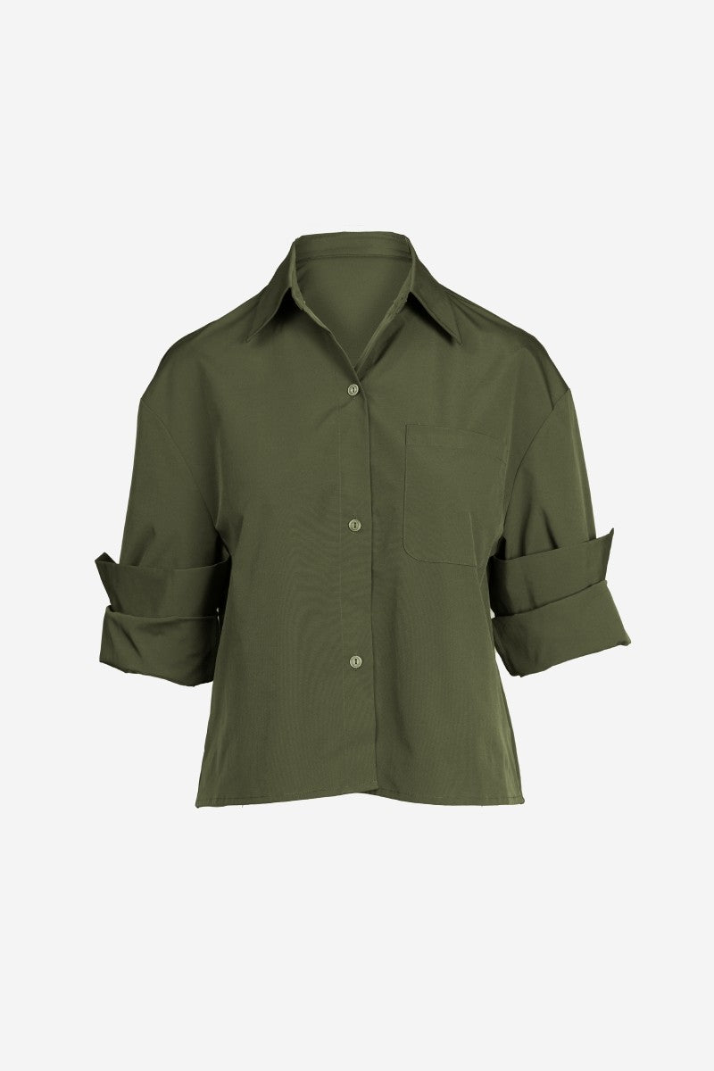 The Stevie Rolled Sleeve Button Up Blouse features crisp taffeta fabric that maintains a polished silhouette throughout the day. Its button-up front offers a clean, versatile design, while the long sleeves can be worn down or easily rolled up and secured with a button tab for adaptability. This blouse pairs seamlessly with tailored trousers for a professional setting or with denim to elevate casual ensembles. Ideal for those seeking a refined yet flexible wardrobe staple.