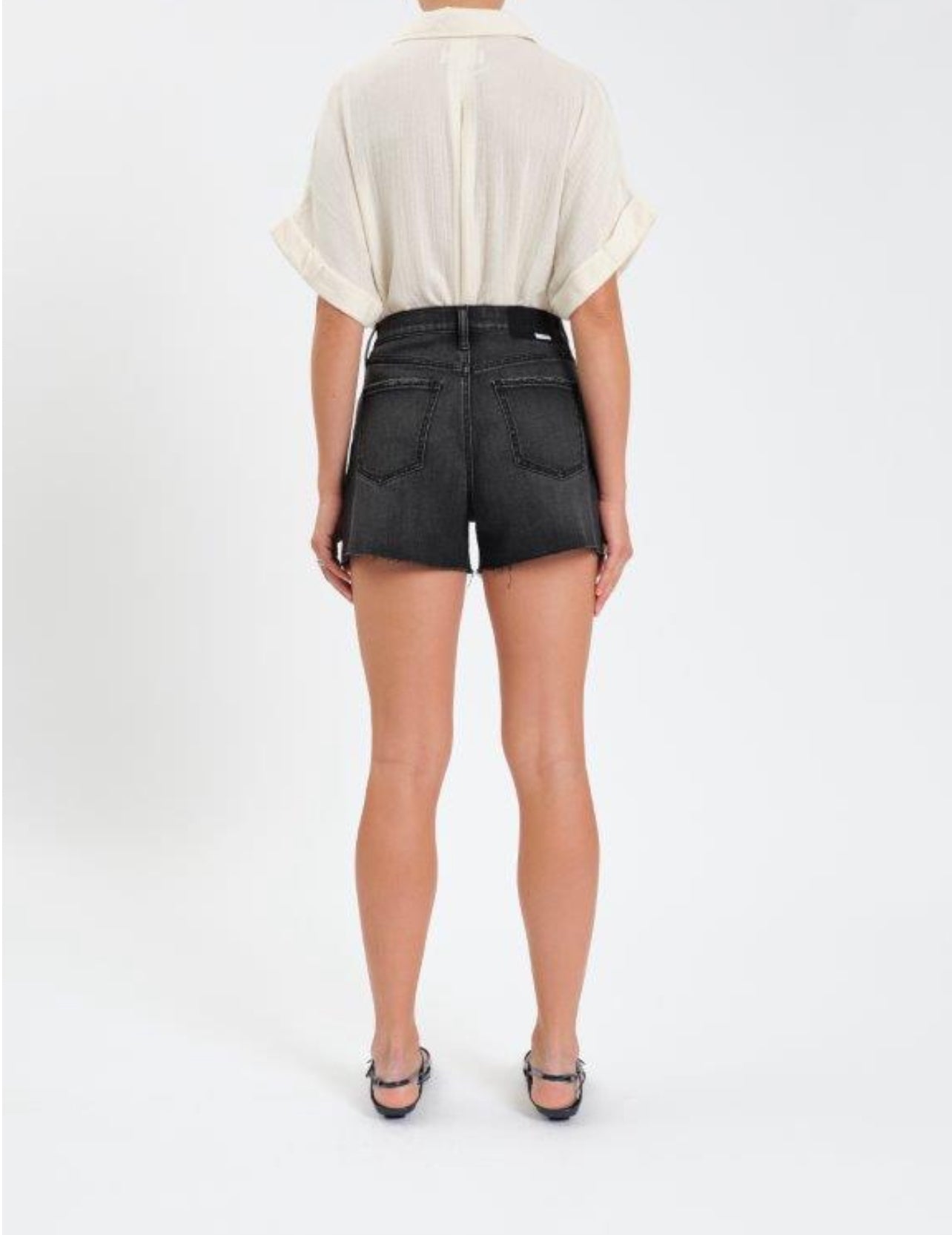 Step into style with the Knockout High Rise Short in Night Life Vintage. This iconic jean short features a faded black wash and frayed hem for a unique look. Made with our "Hug" denim, it hugs your body for a flattering fit. Say goodbye to uncomfortable denim and hello to style.