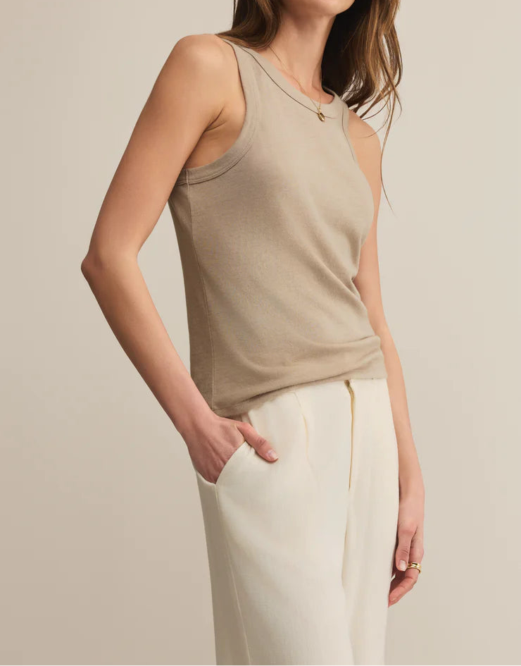 The Z Supply Select Airy Tank offers a relaxed fit crafted from breathable loose knit jersey, ensuring comfort on warm days. Featuring a classic crew neckline and bra-friendly wide straps, this versatile tank provides both style and practicality. Its tuckable design makes it an essential layering piece for effortless, everyday wear.